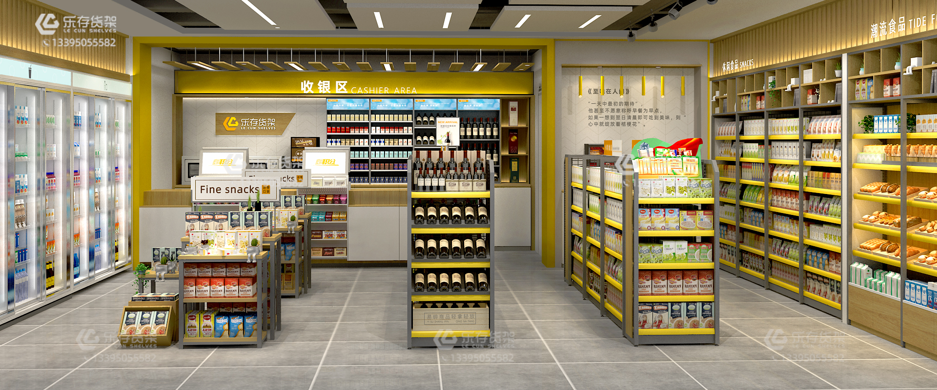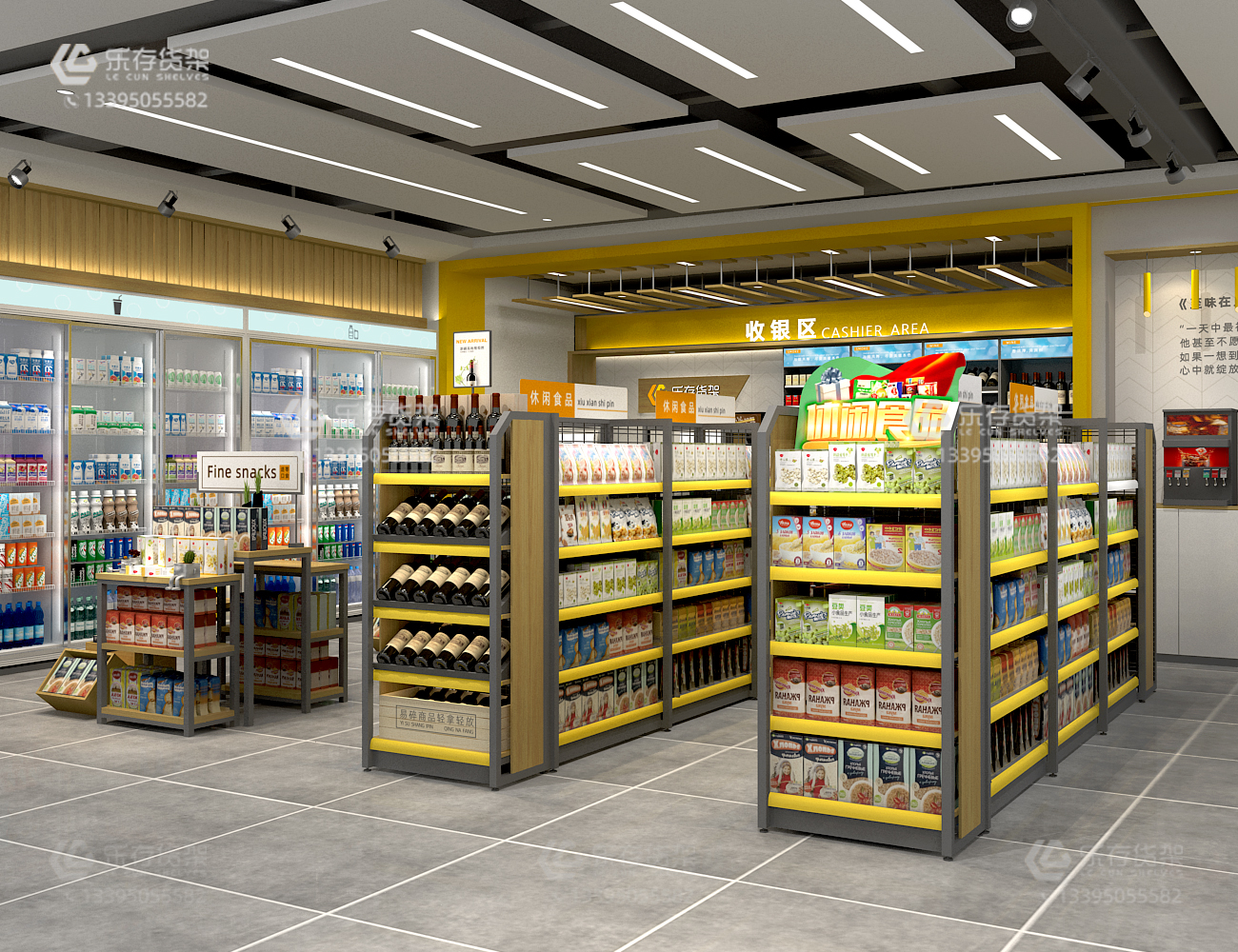 廈門便利店貨架,便利店陳列設(shè)計,便利店貨架設(shè)計,便利店貨架,便利店貨架裝修效果圖(樂存貨架)